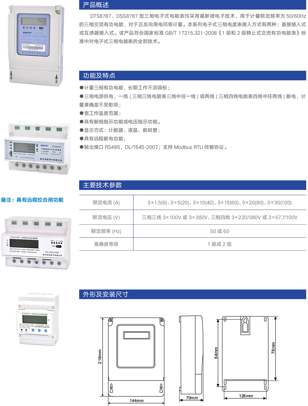 DTS8787型 三相導軌式多功能電能表